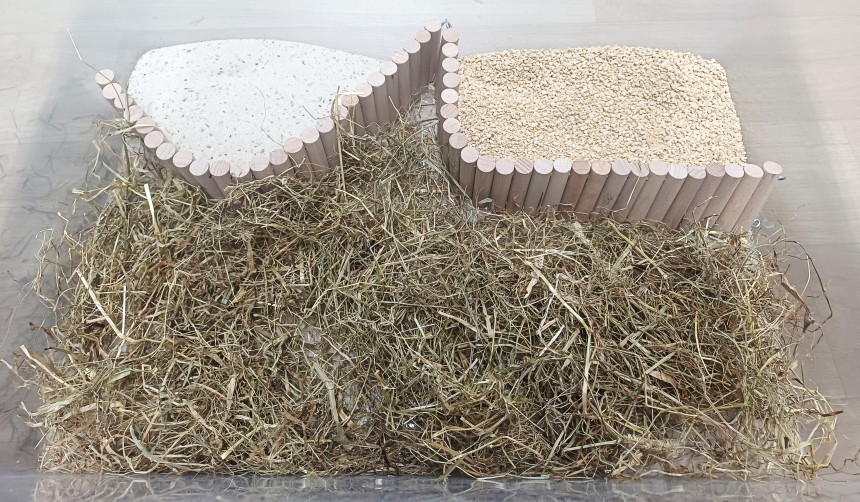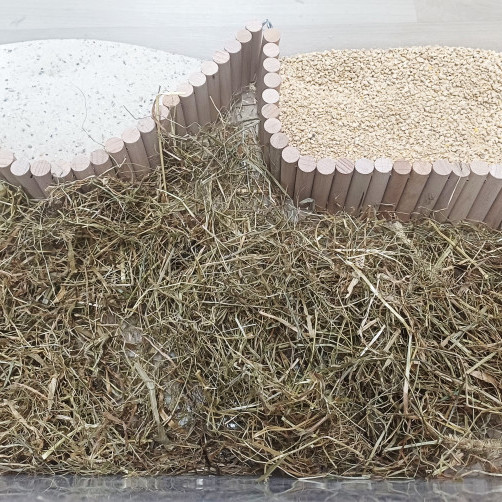 먹이 공간 / 휴식 공간 / 목욕공간을 분리해 보세요~